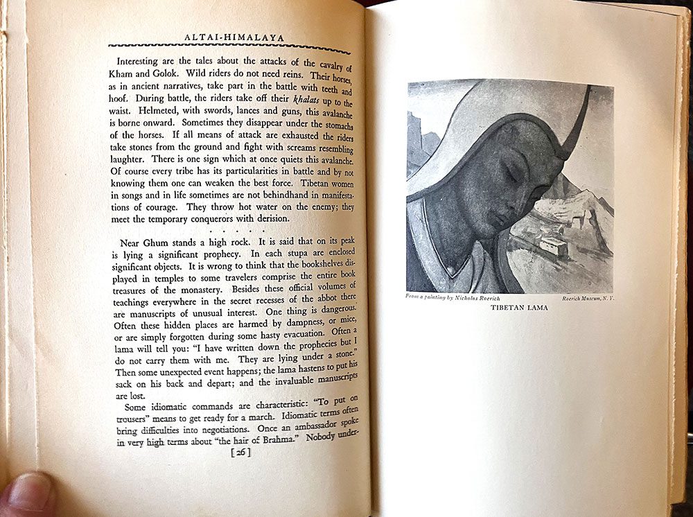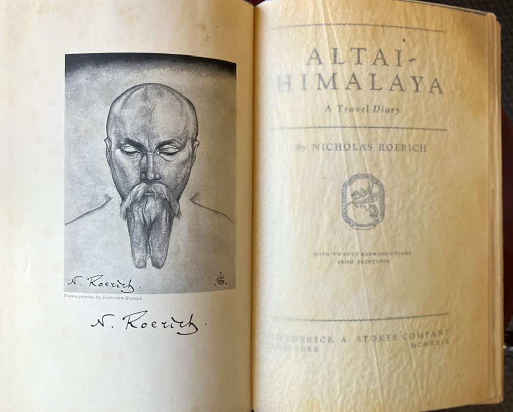 Roerich’s Altai-Himalaya records his 1924–28 Central Asian expedition, blending travel narrative with cultural observation and artistic reflection. The Stokes first edition remains the foundational English-language printing, notable for its portrait frontispiece and plates after Roerich’s paintings.